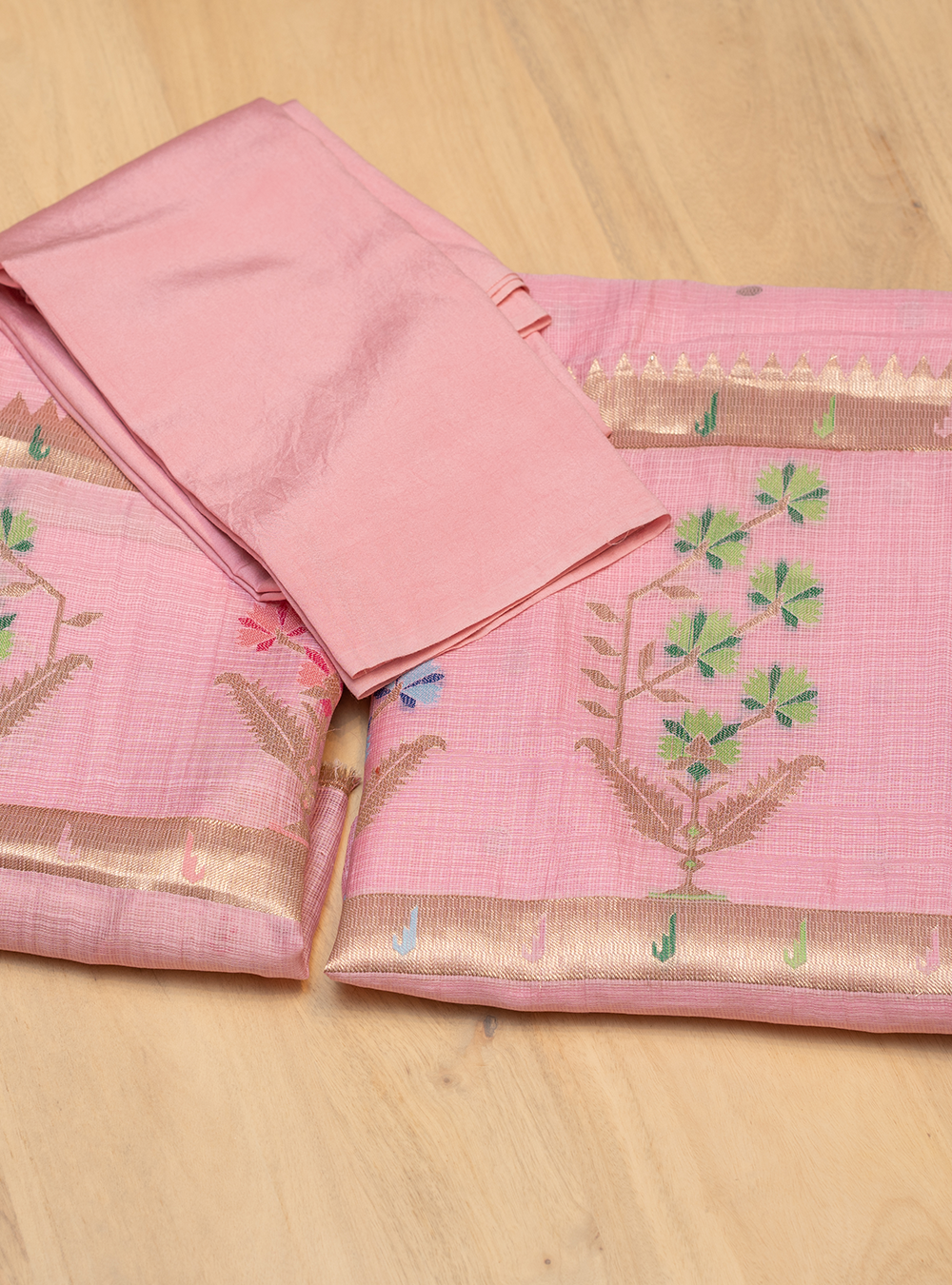 Kota Silk Suit Set with Meenakari Banarasi Border