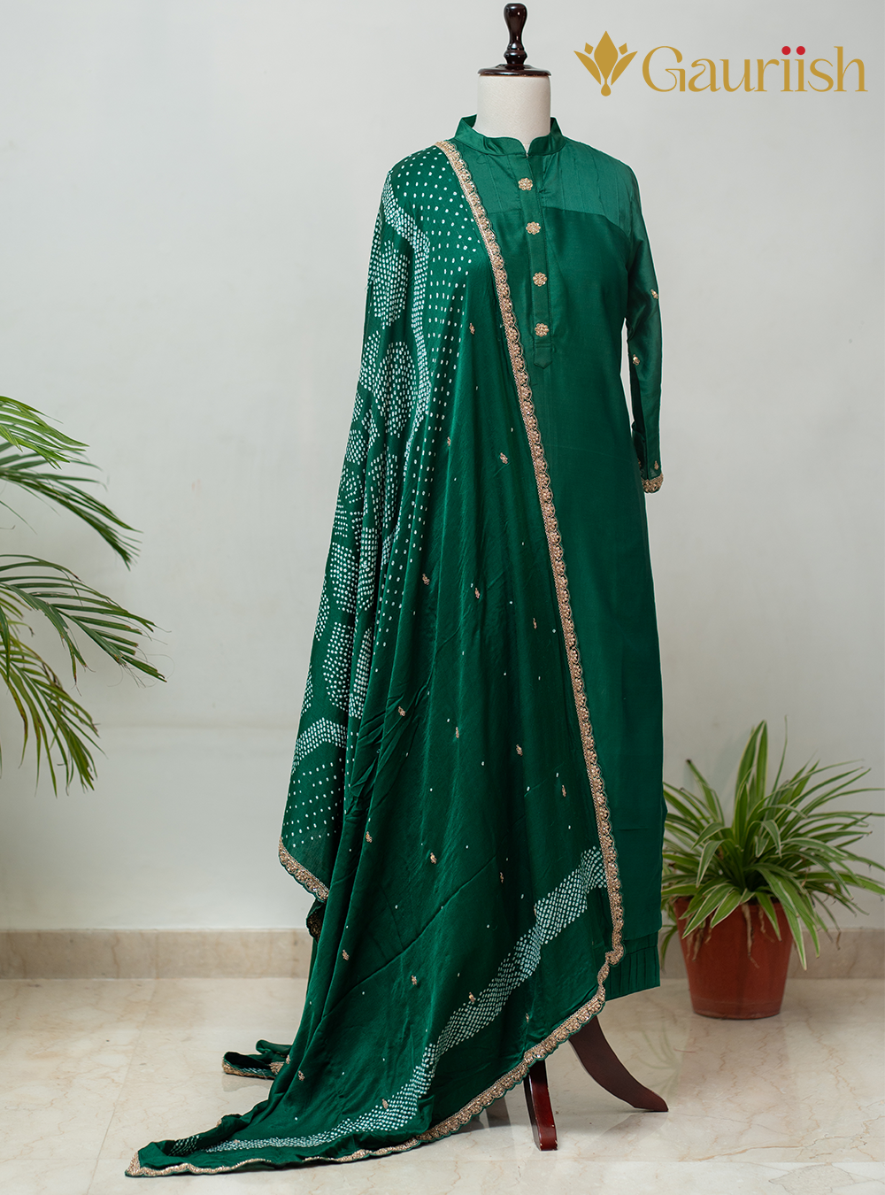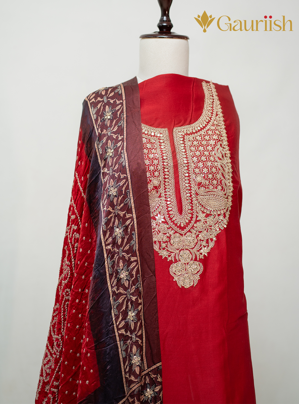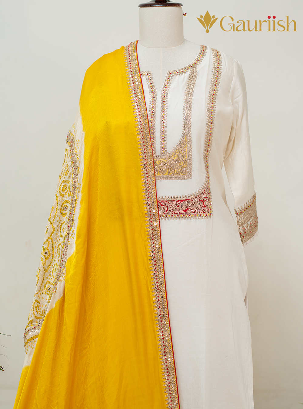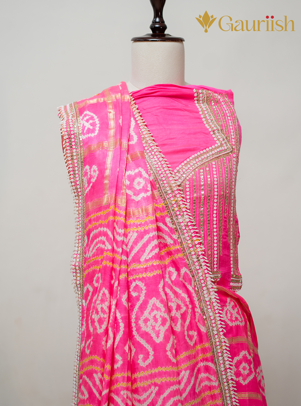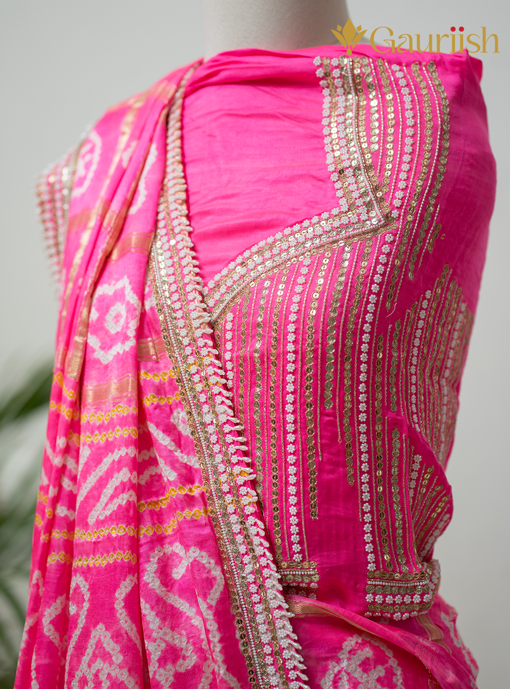 Bandhej Kurta Heavy Embroidery with Tikki Marodi Work