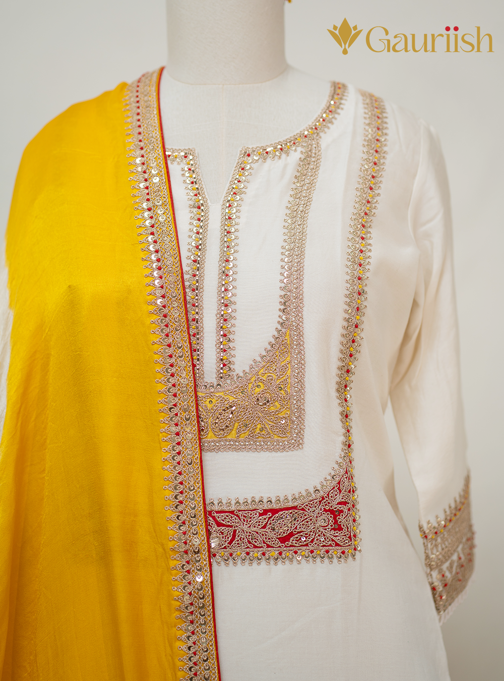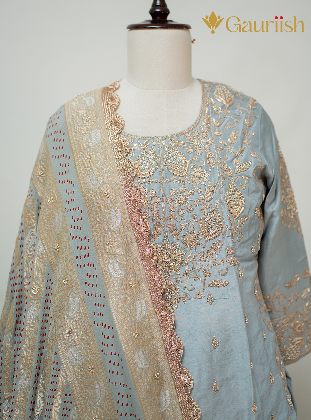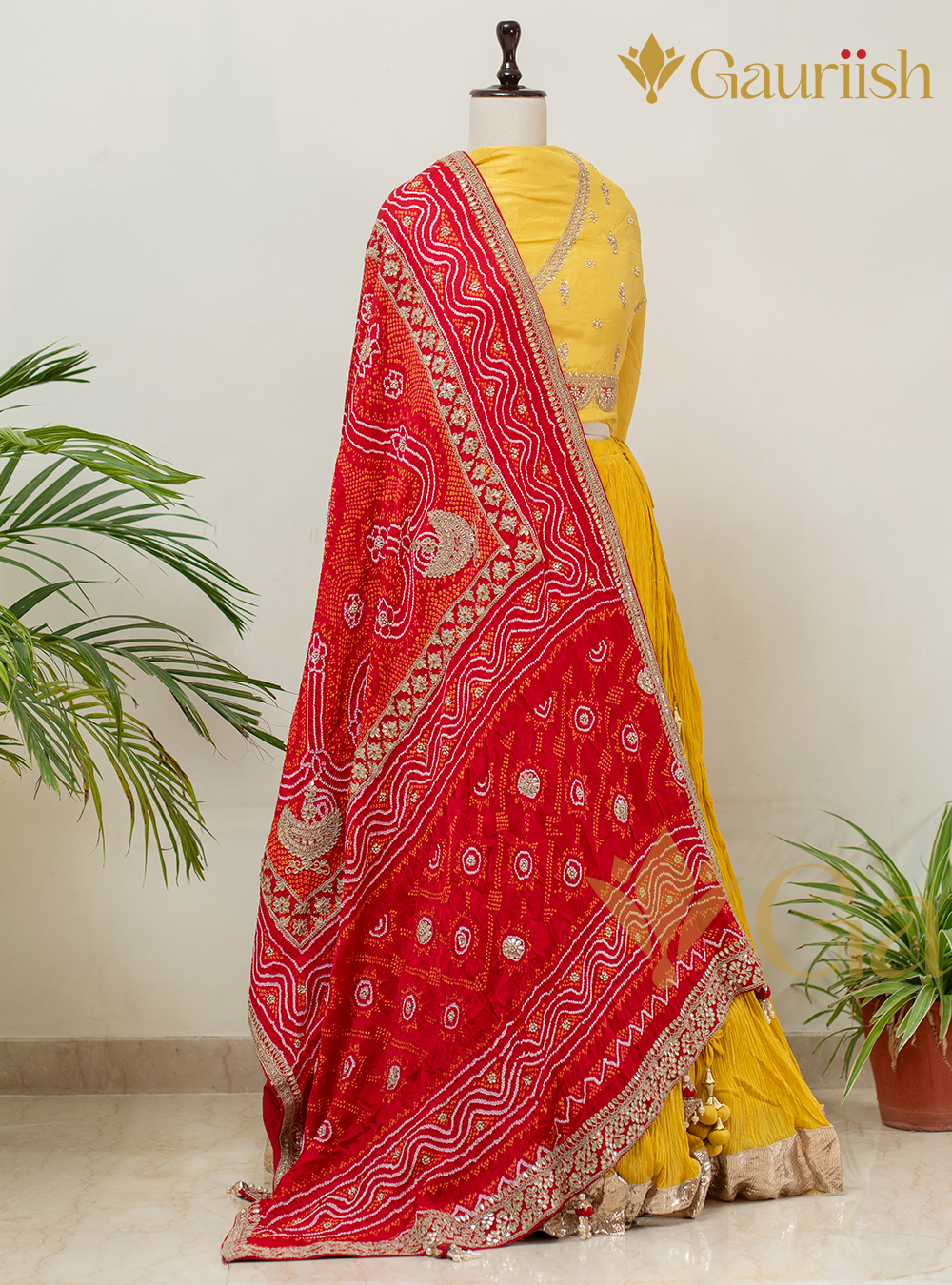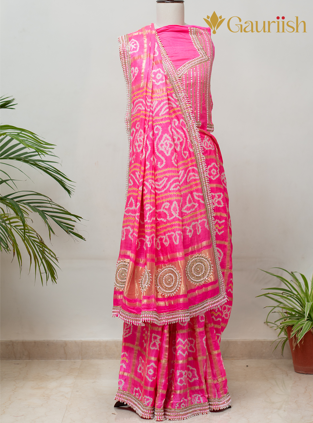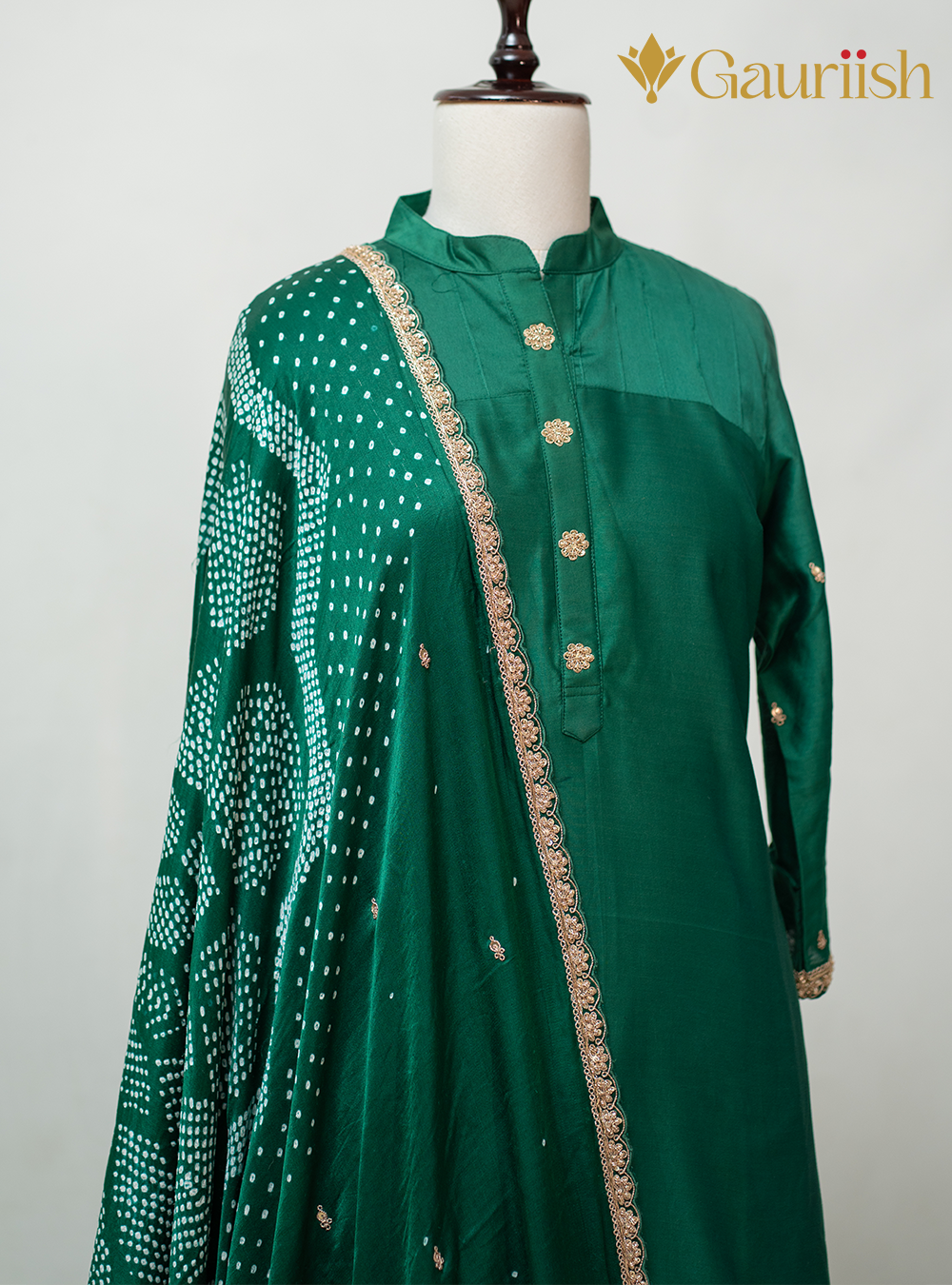 Bandhej Kurta Heavy Embroidery with Tikki Marodi Work