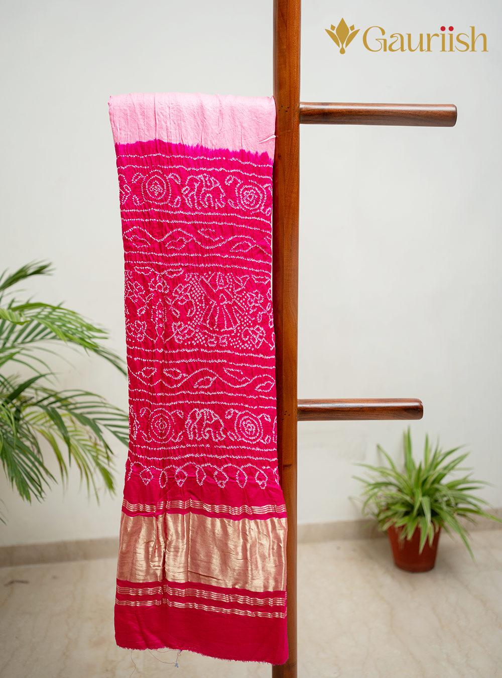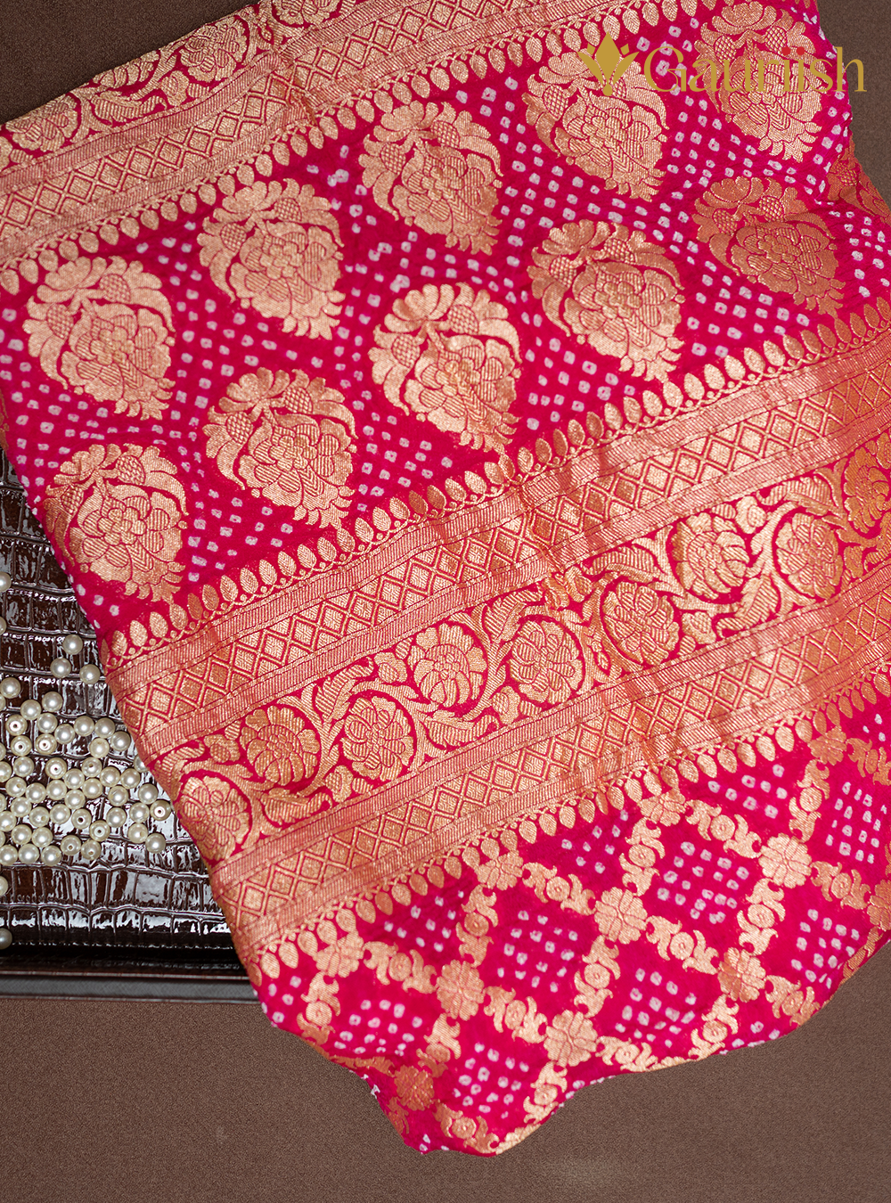 Gajji Silk Saree with Rai Bandhej Pallu